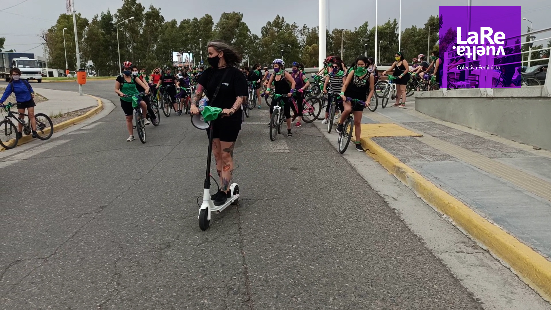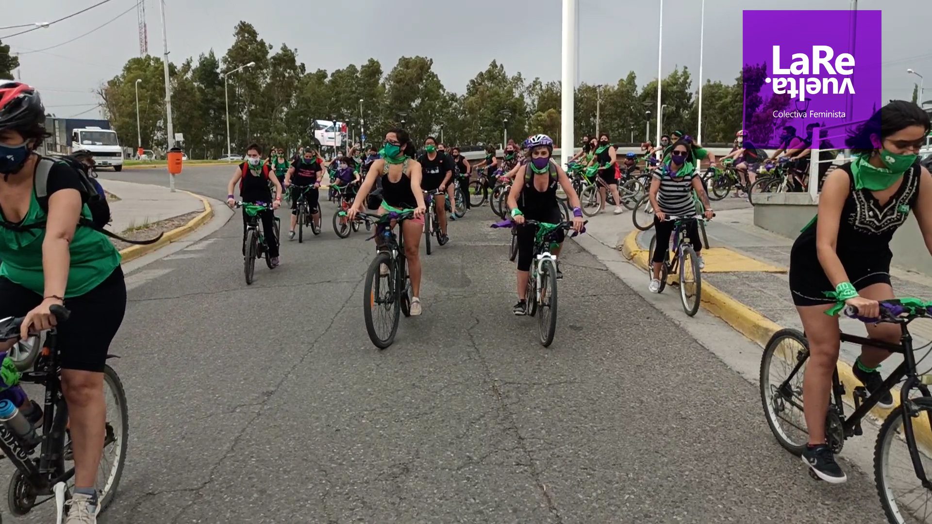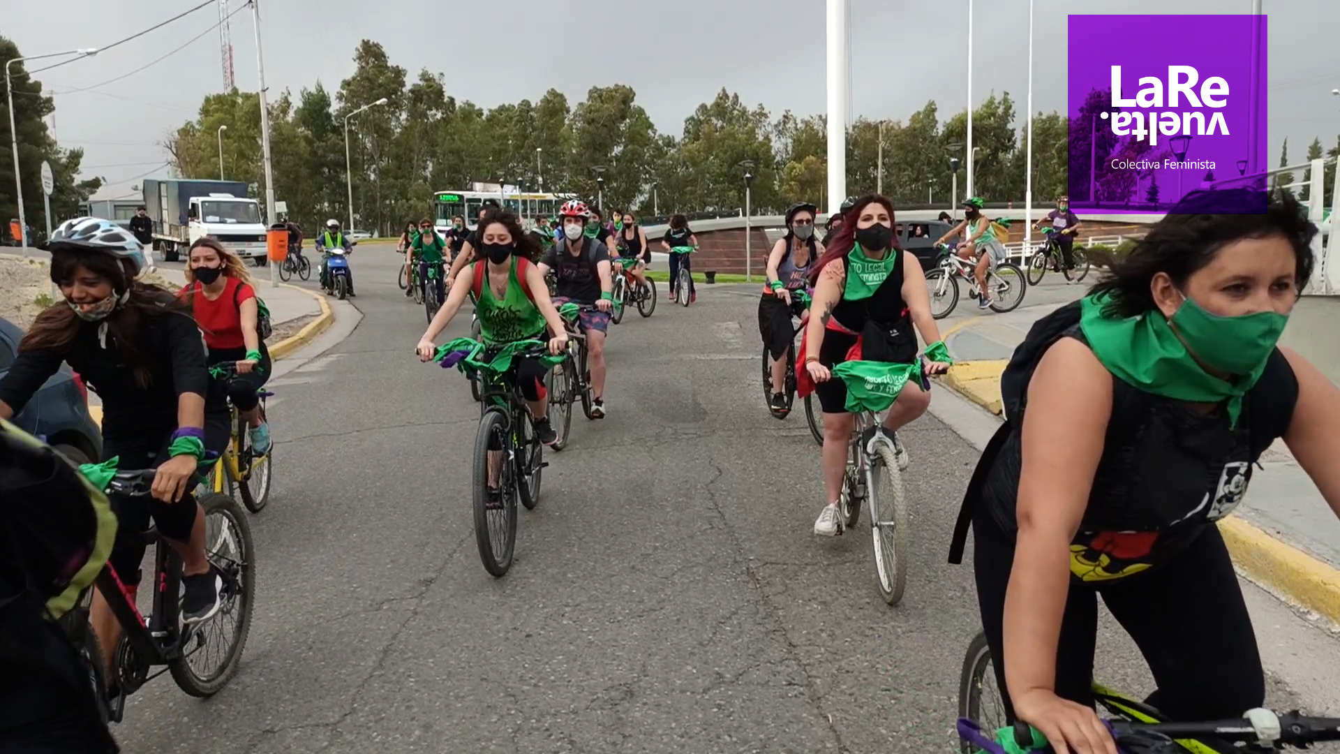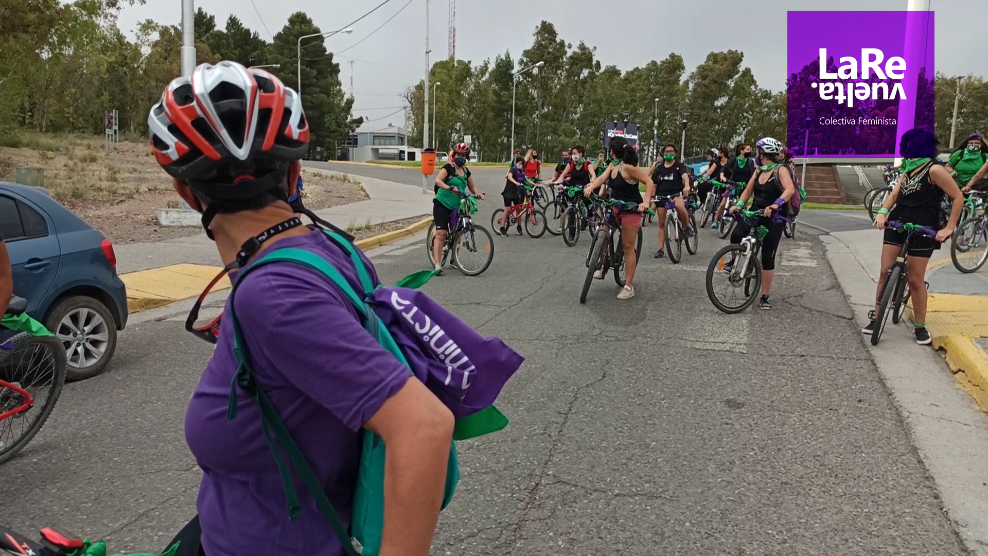 Las bicis y bengalas para que el Aborto Legal se debata y apruebe en el Congreso también coparon Senillosa durante la tarde del miércoles.